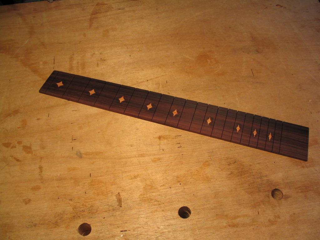 fretboard is generally made of quartersawn rosewood or ebony, and has a